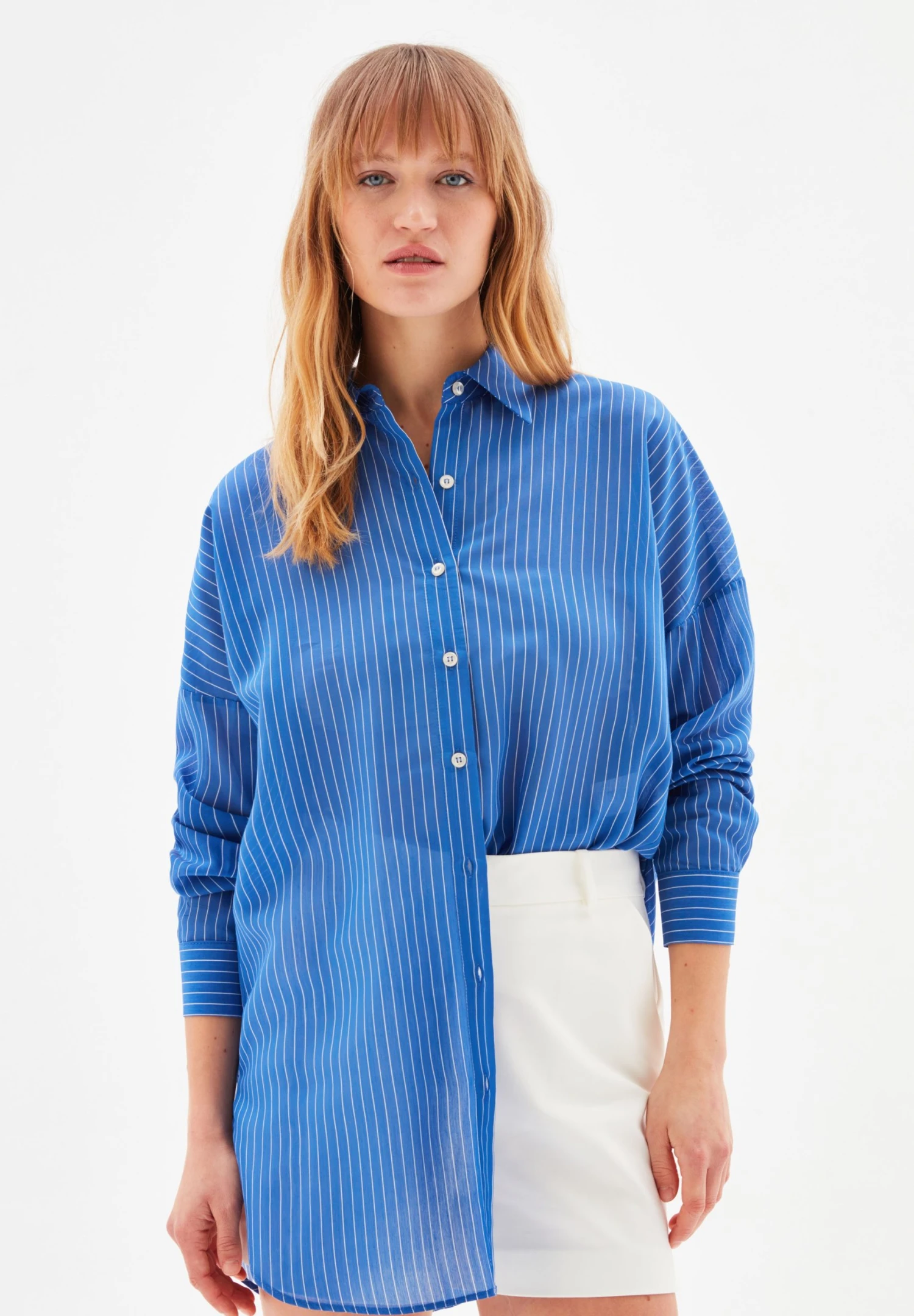 AdL Long Sleeve Striped- Overhemdblouse – Striped Navy Blue
