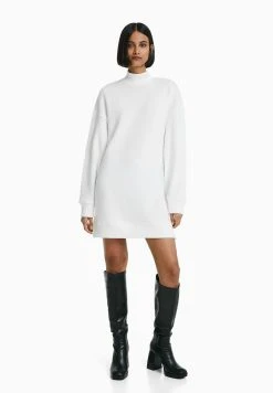 BERSHKA Long Sleeve – Gebreide Jurk – Beige