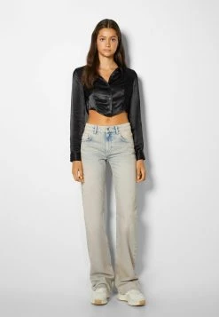 BERSHKA Long Sleeve – Overhemdblouse – Black