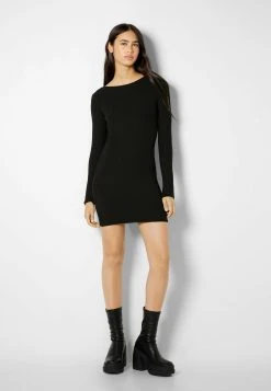BERSHKA Long Sleeve – Etui-Jurk – Black