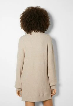 BERSHKA Long Sleeve – Gebreide Jurk – Sand