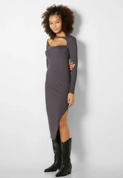 BERSHKA Long Sleeve – Etui-Jurk – Dark Grey