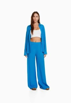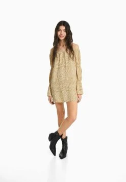 BERSHKA Long Sleeve And Gathered Detail At The Front With Stopper- Blouse – Stone