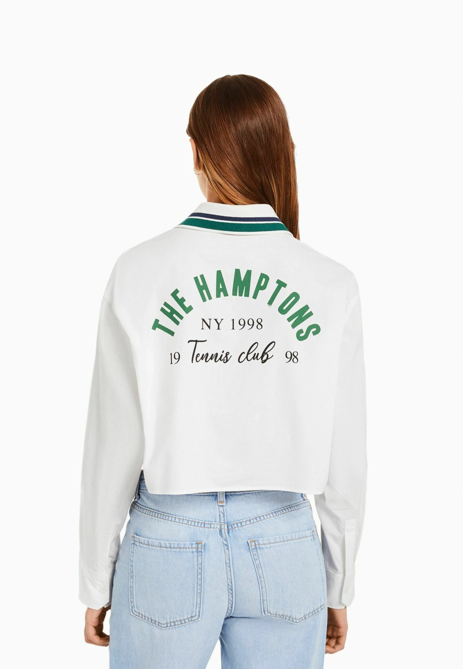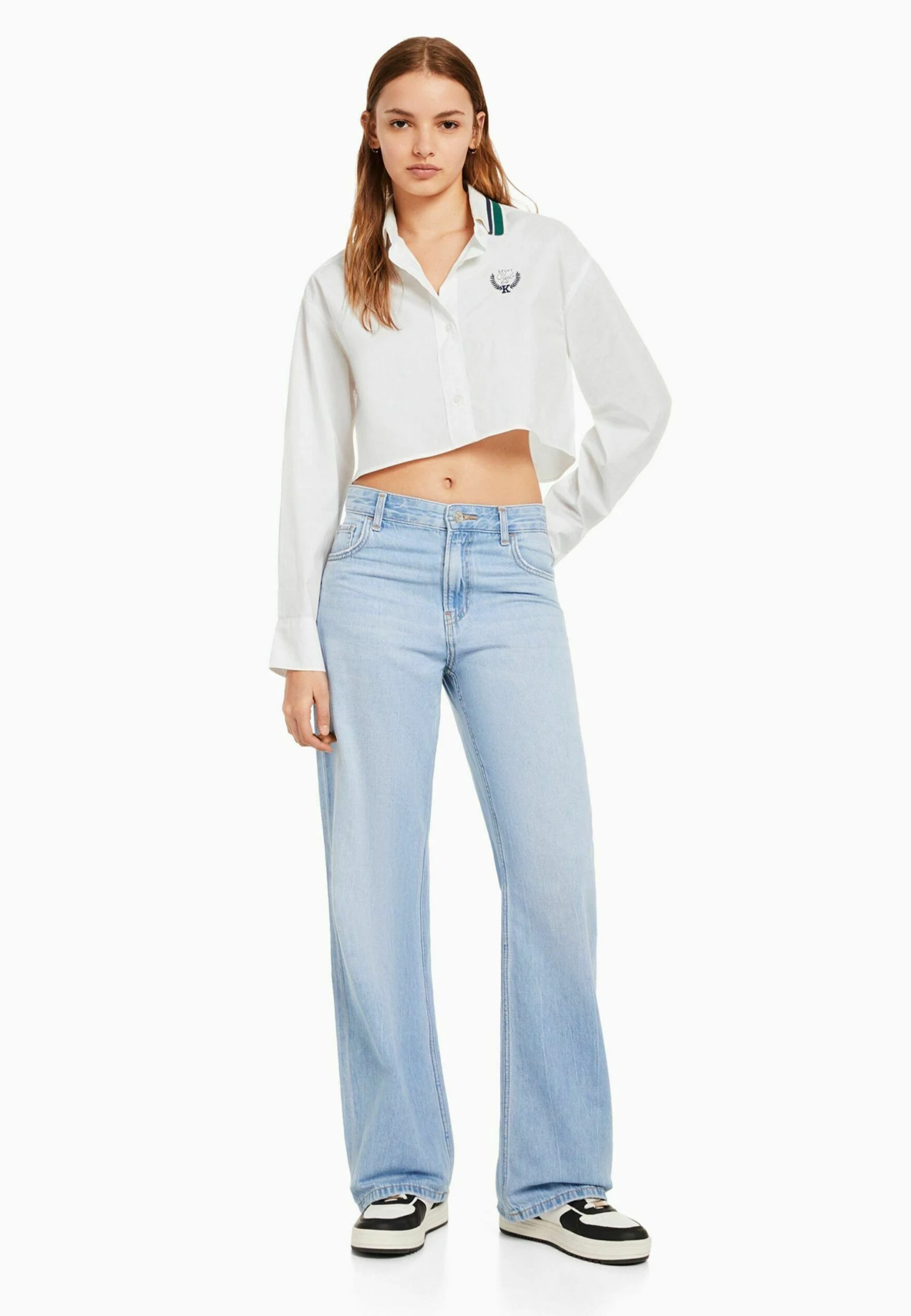 BERSHKA Embroidered Long Sleeve Print – Overhemdblouse – White