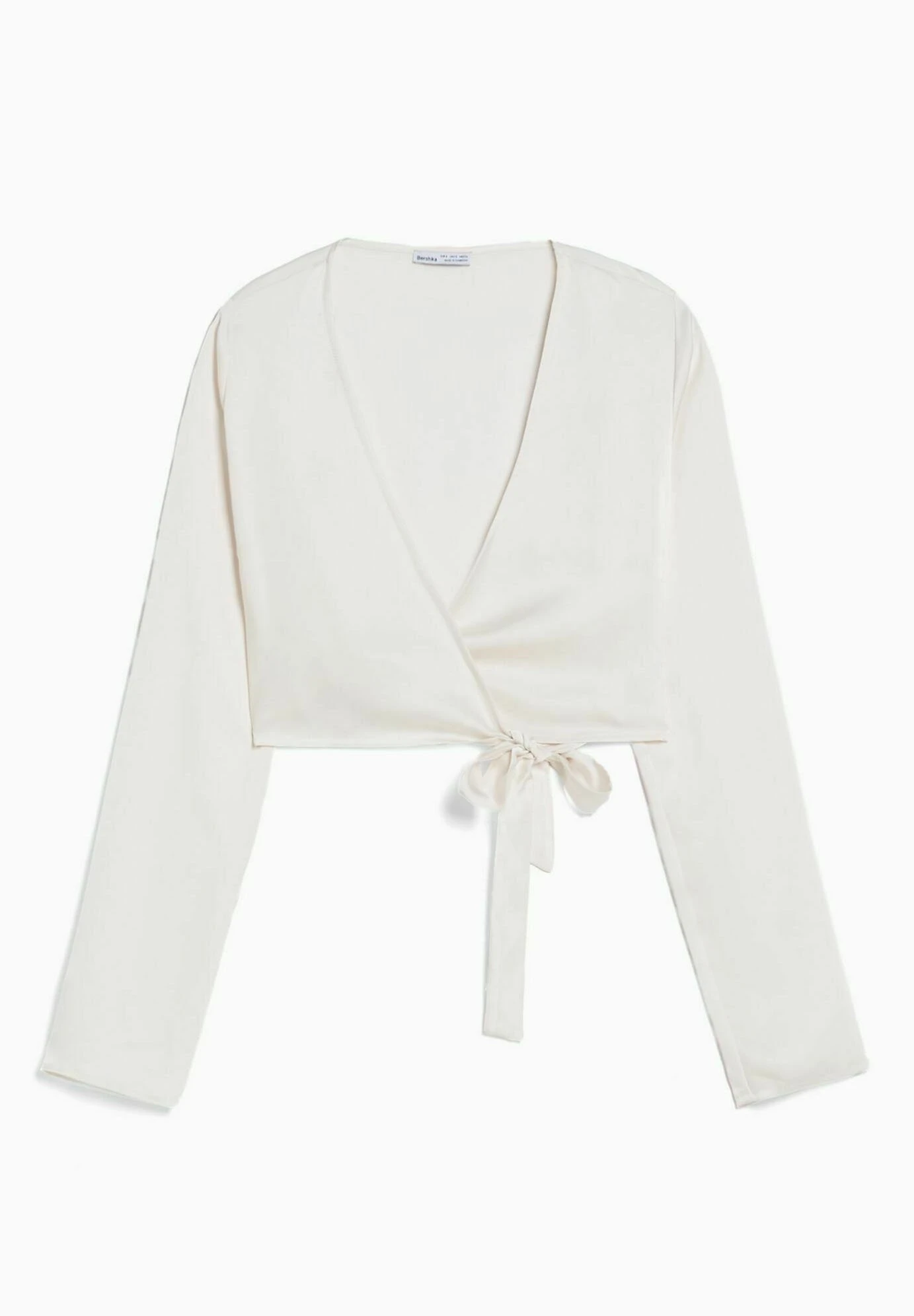 BERSHKA Long Sleeve Finish Crossover – Blouse – Beige