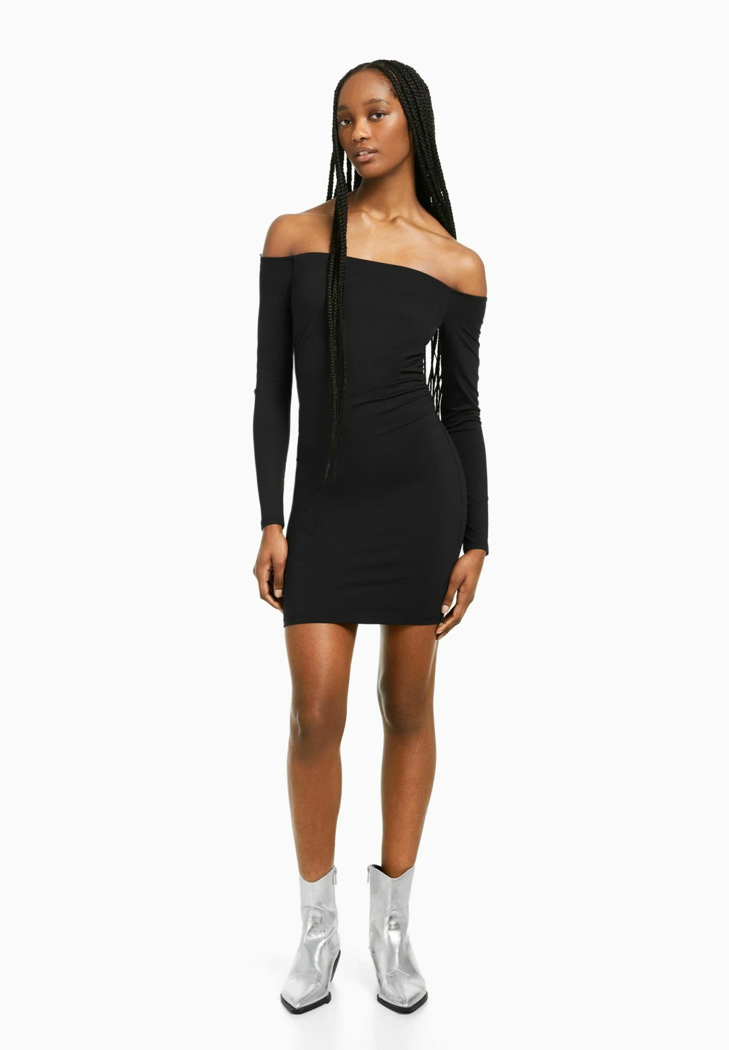 BERSHKA Long Sleeve Mini – Etui-Jurk – Black
