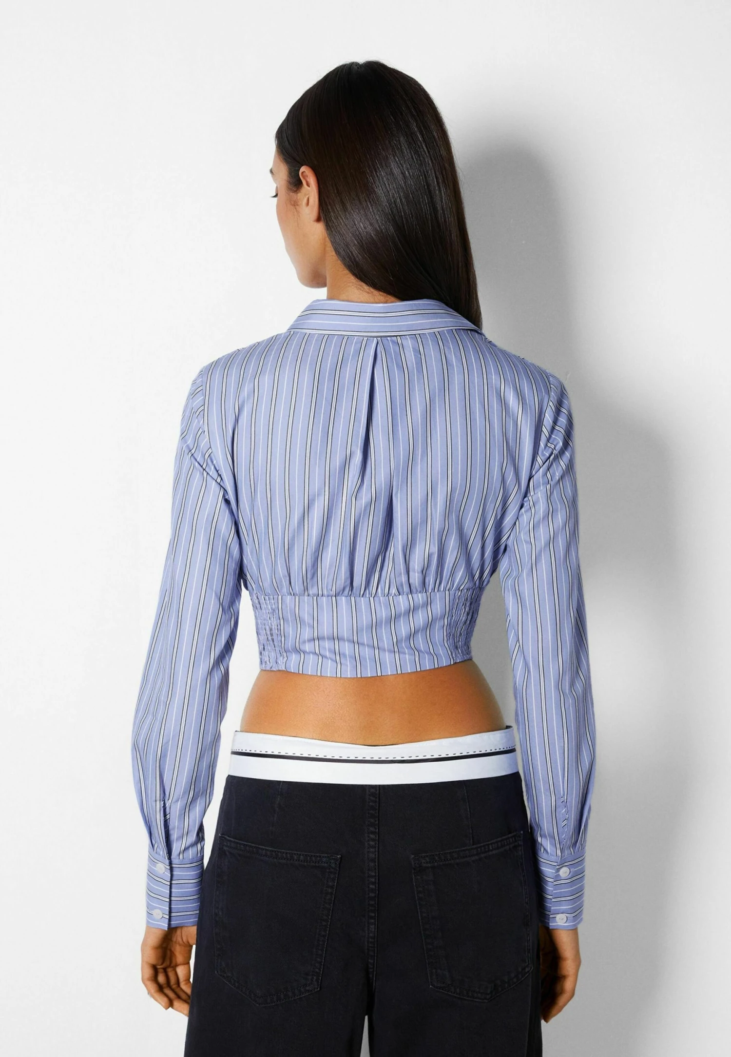BERSHKA Long Sleeve – Overhemdblouse – Blue
