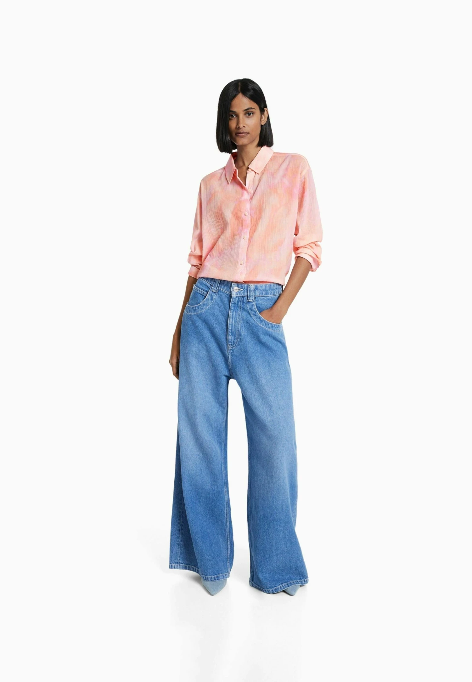BERSHKA Long Sleeve – Overhemdblouse – Brown