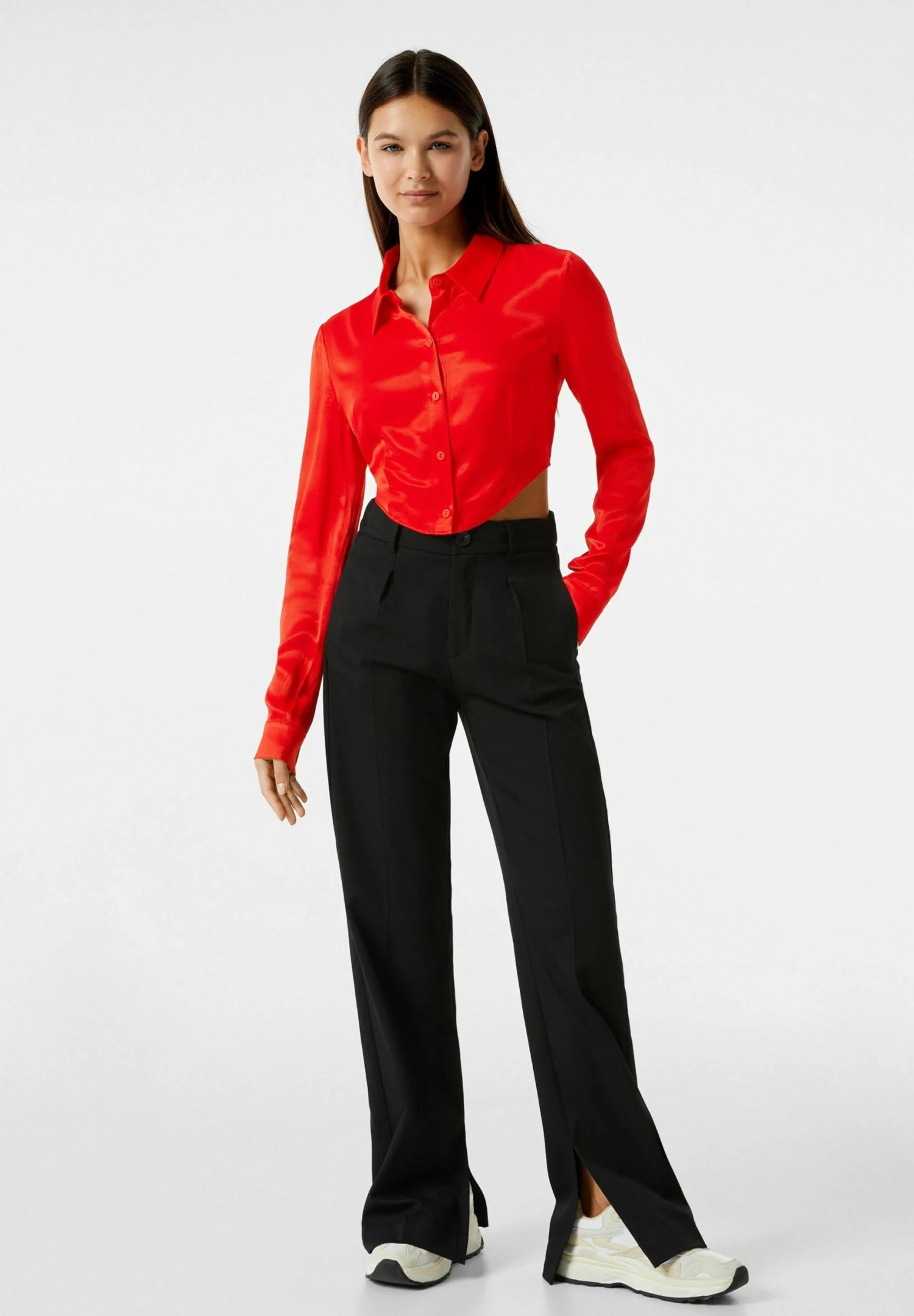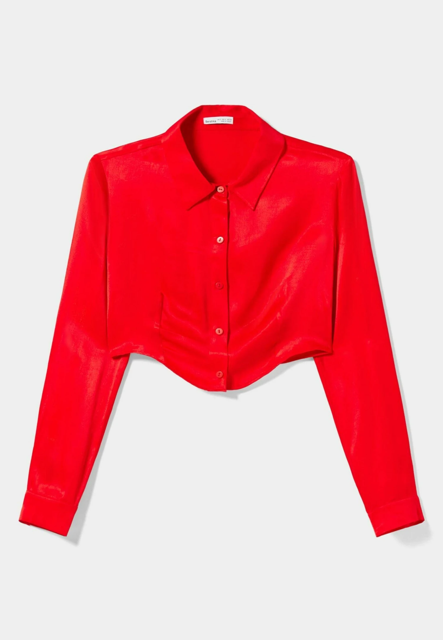 BERSHKA Long Sleeve – Overhemdblouse – Red