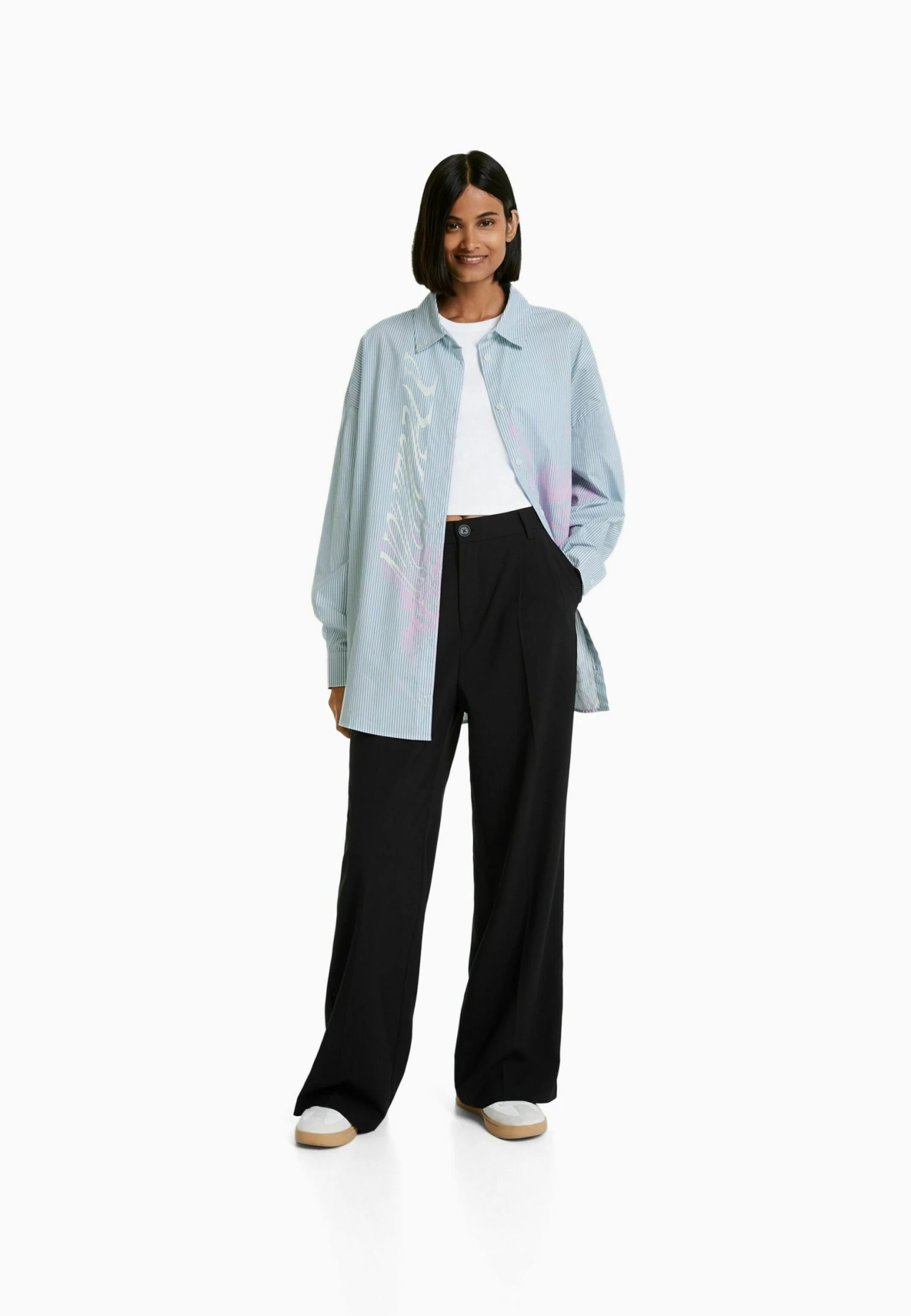 BERSHKA Long Sleeve Striped – Overhemdblouse – Blue