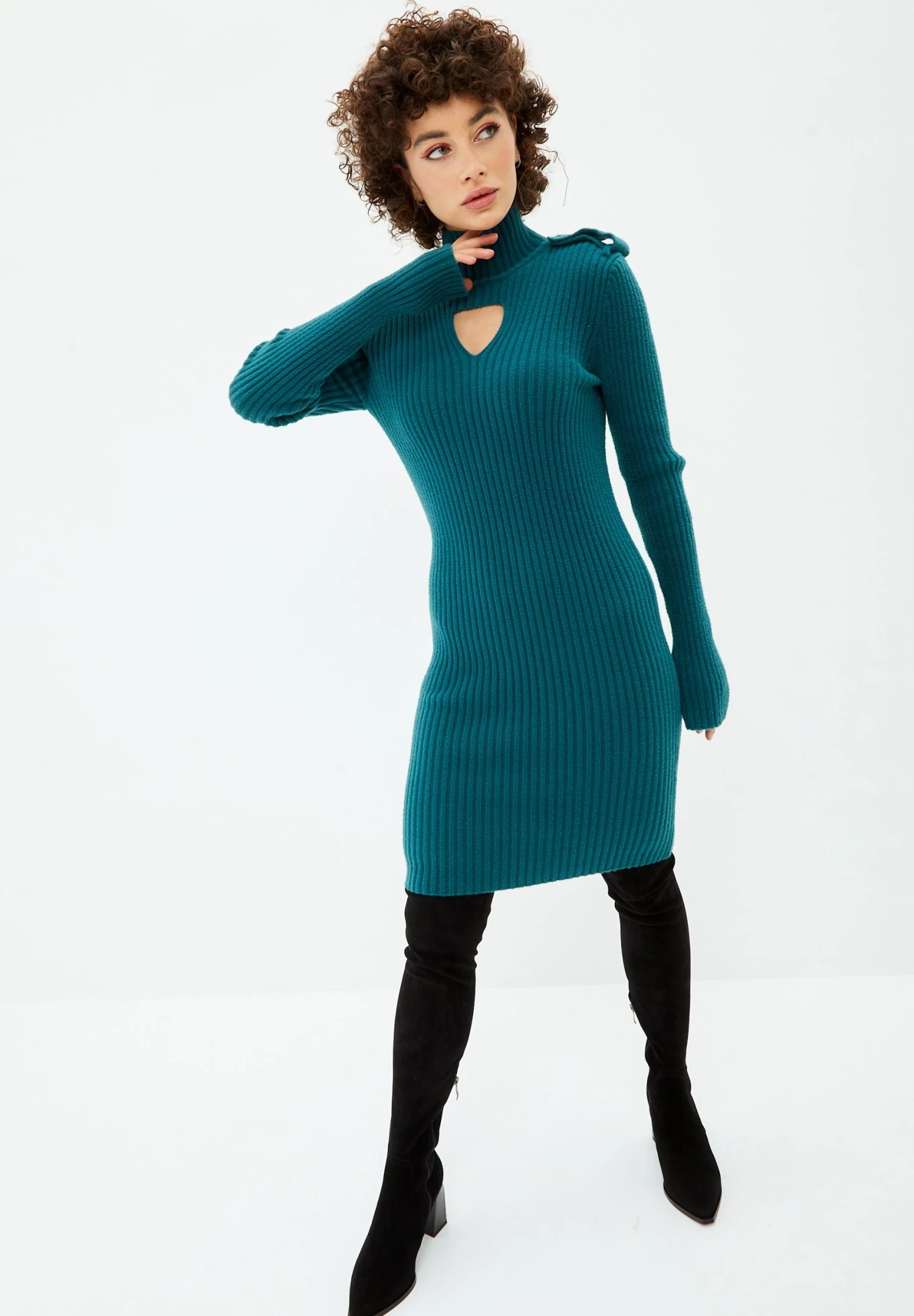 CESARE GASPARI High Neck Long Sleeve – Etui-Jurk – Teal