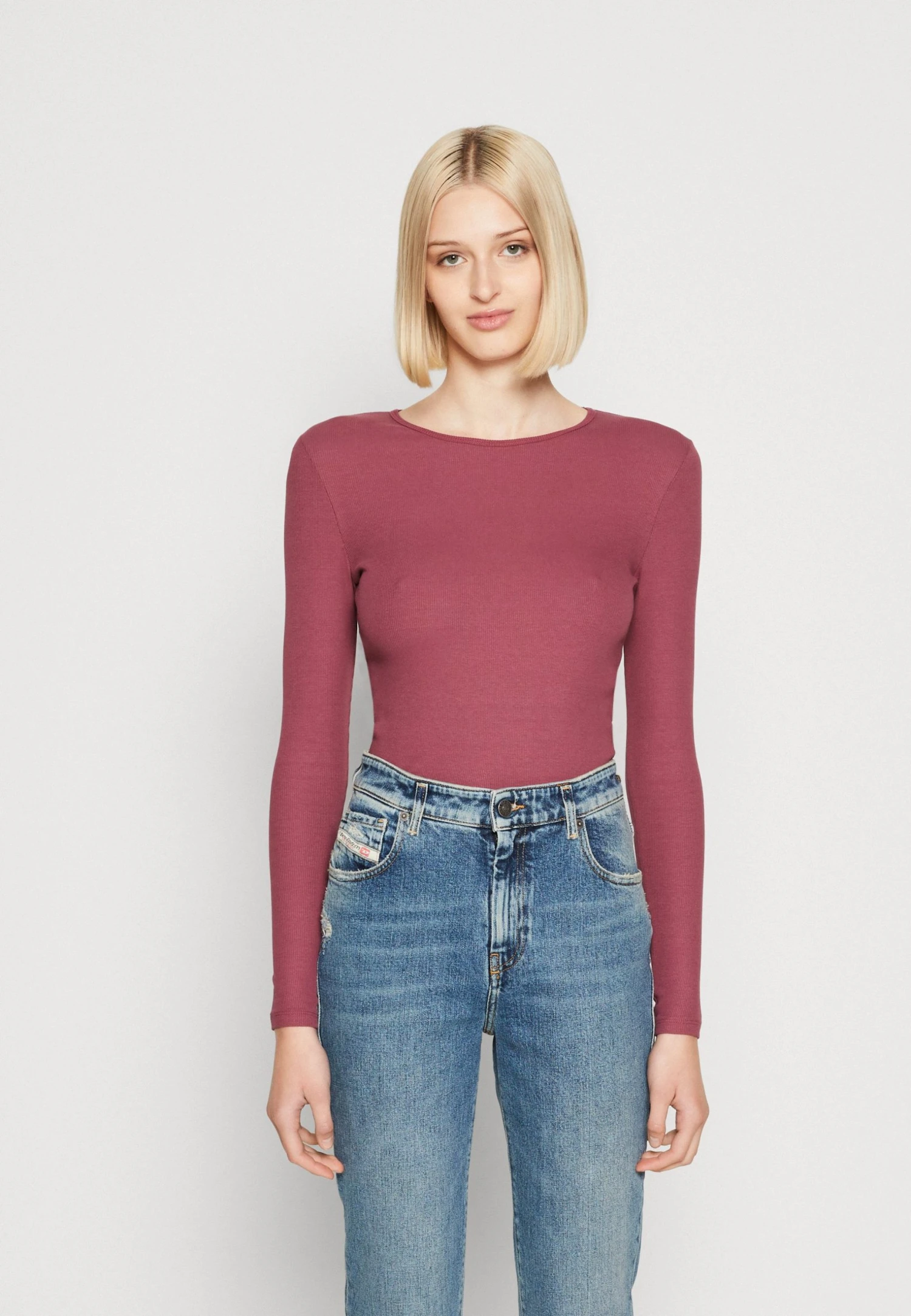 COTTON ON The One Organic Crew Long Sleeve – Longsleeve – Dark Plum