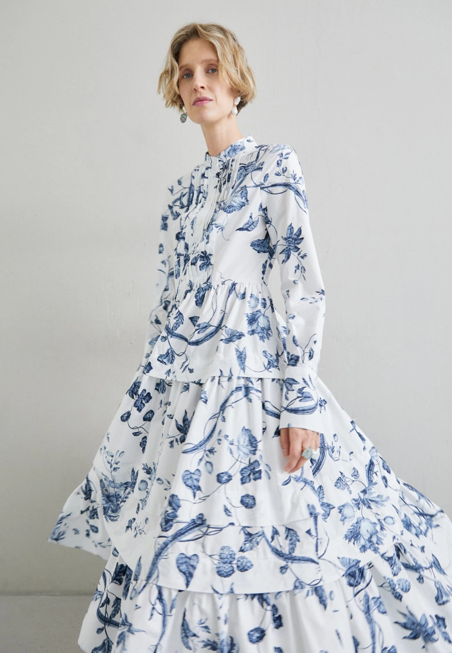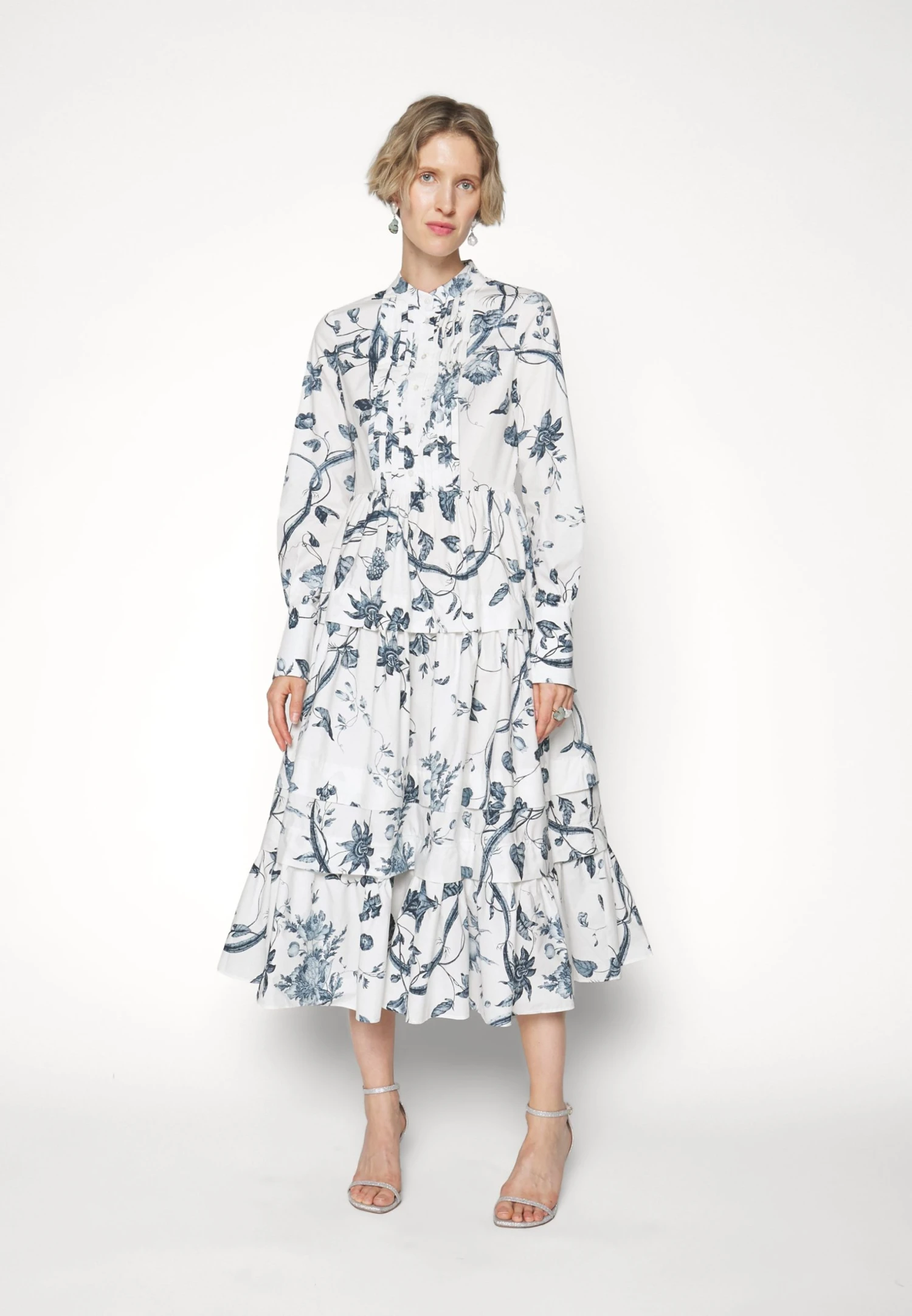 Erdem Long Sleeve Tier Dress Pin Tuck Detail – Blousejurk – Vine White