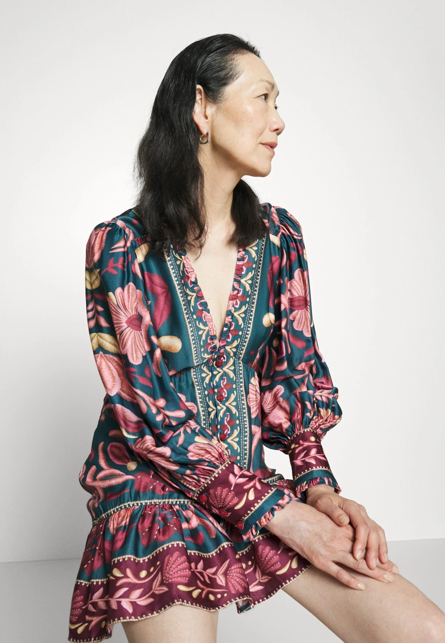 Farm Rio Long Sleeve Mini Dress – Blousejurk – Seasheel Teal