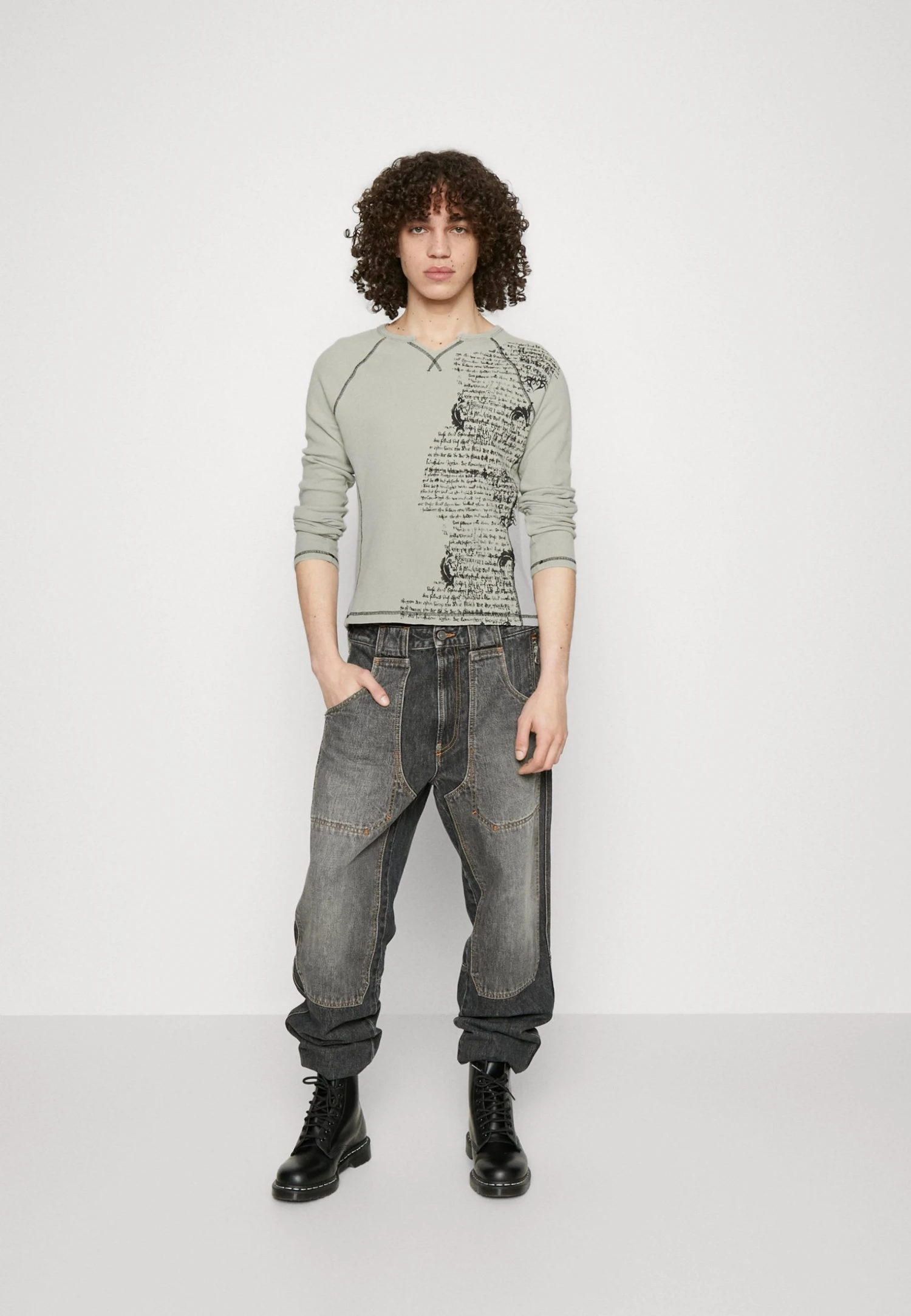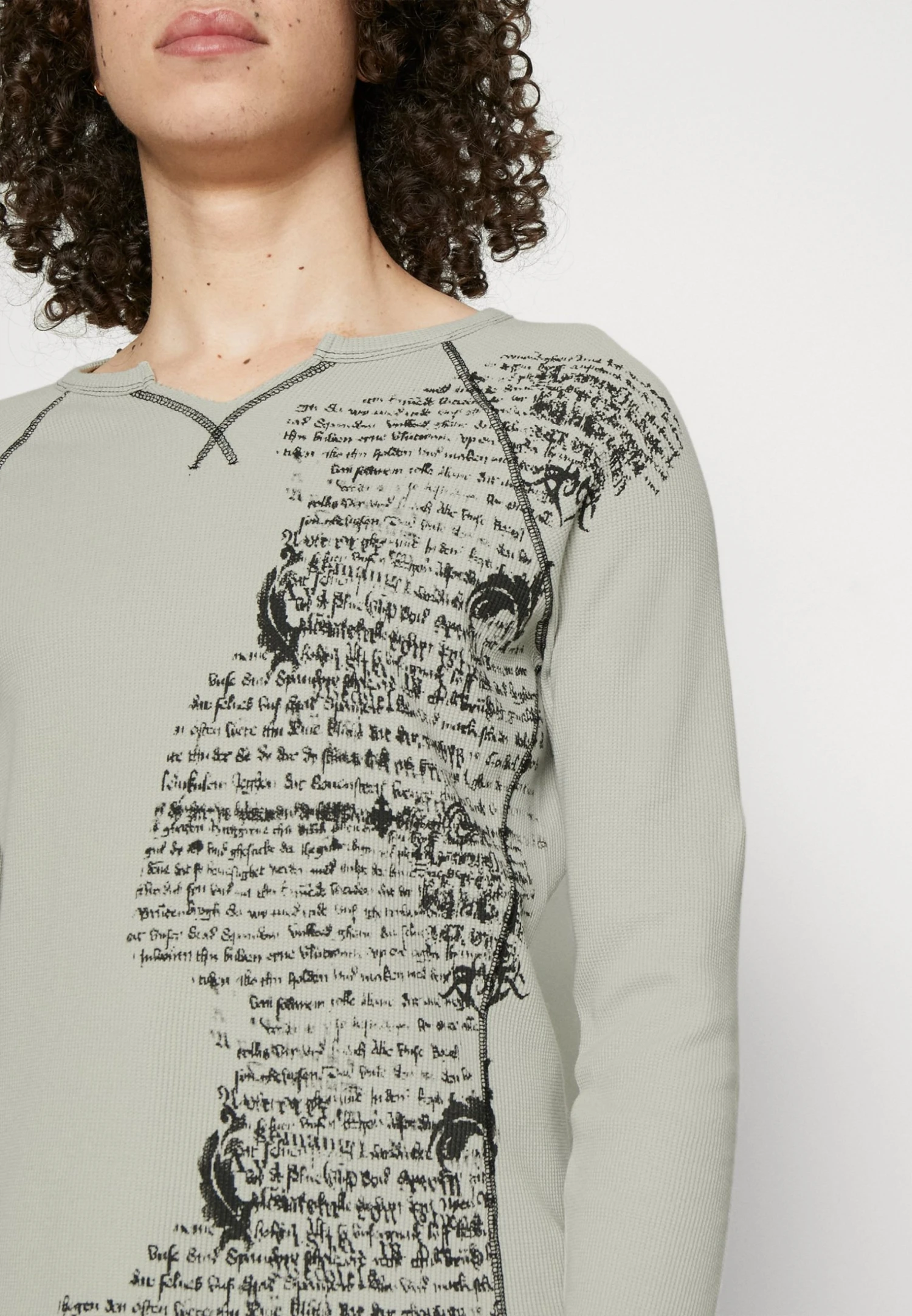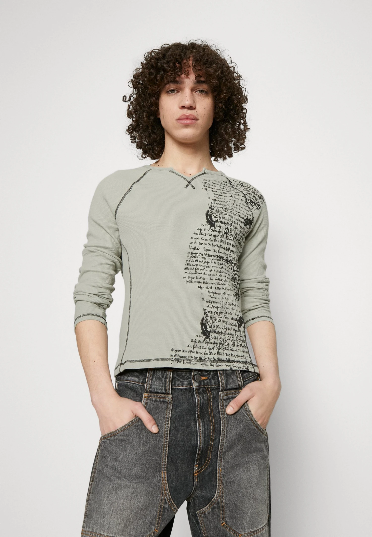 Jaded London Grey Text Print Waffle Long Sleeve – Longsleeve – Grey