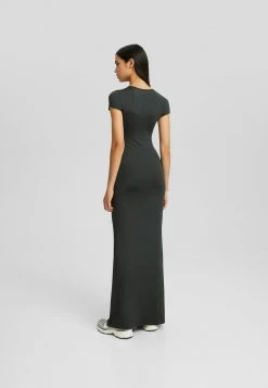 BERSHKA Long Short Sleeve- Maxi-Jurk – Olive