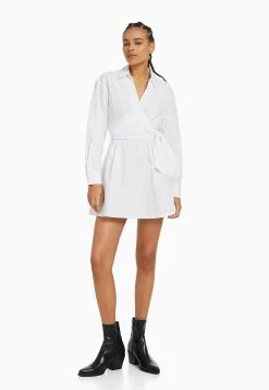 BERSHKA Crossover Detail- Mini Long Sleeve- Blousejurk – Off White