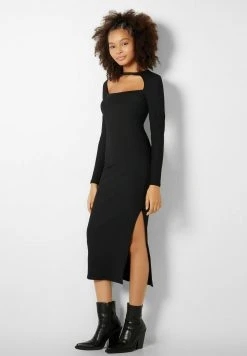 BERSHKA Long Sleeve – Etui-Jurk – Black