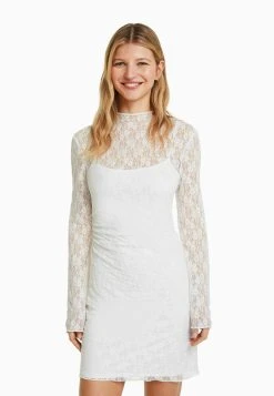 BERSHKA Blonde Lace Long Sleeve 005928 – Cocktailjurk – White