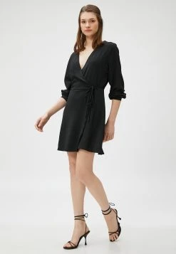 Koton Wrapped Mini V Neck Long Sleeve – Jurk – Black