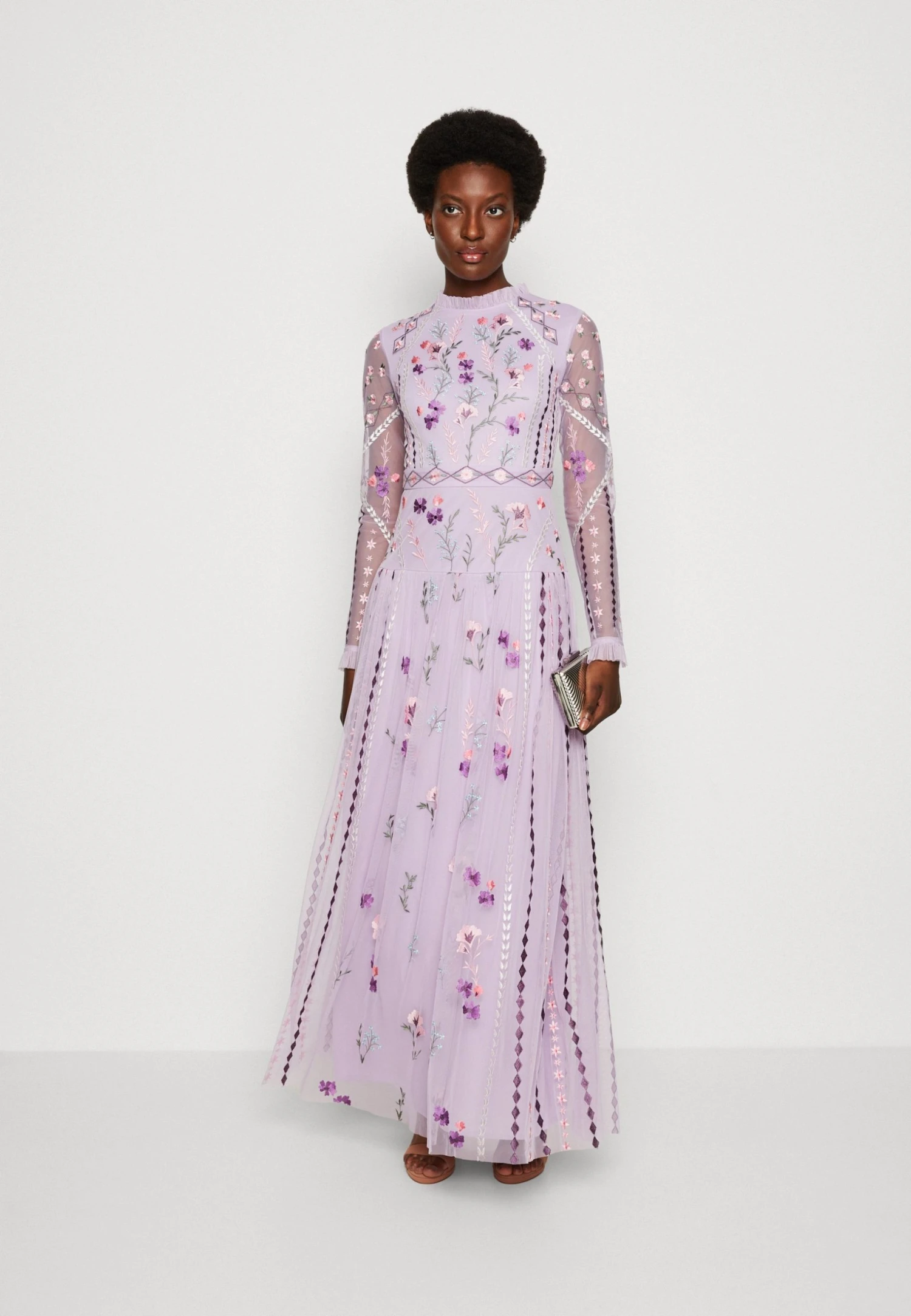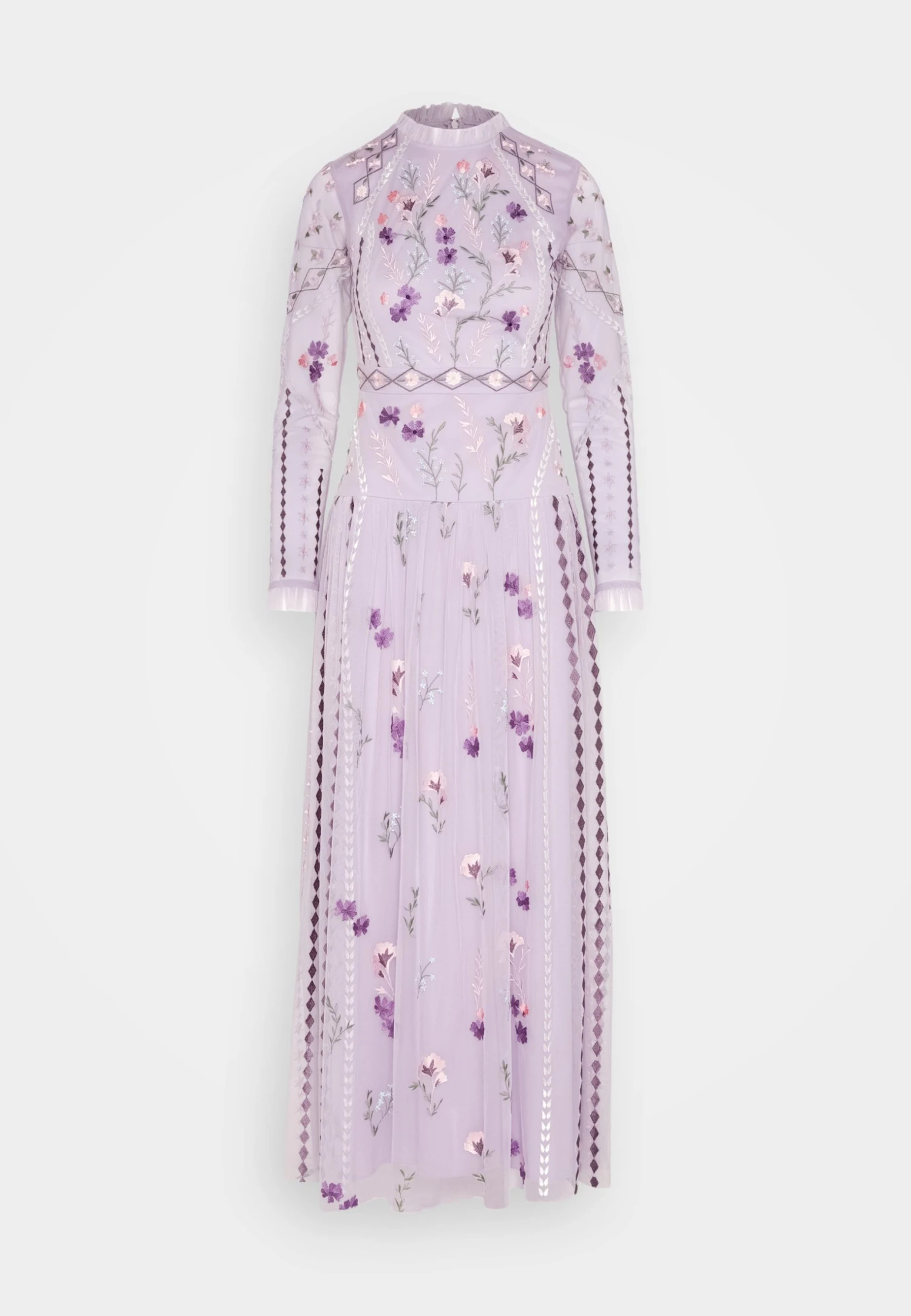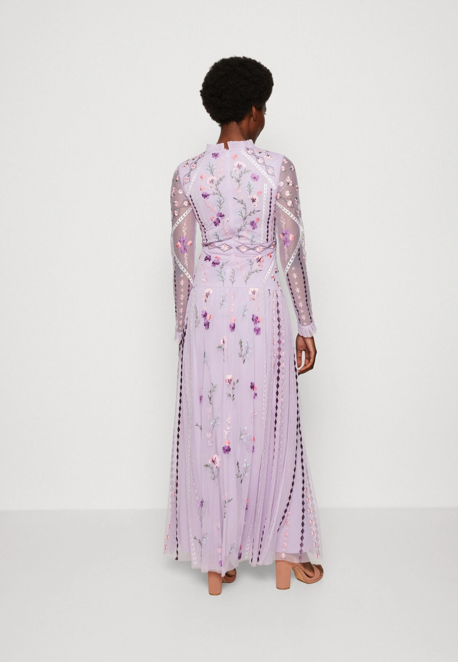 Maya Deluxe Premium Long Sleeve Maxi Dress – Galajurk – Lilac Multi