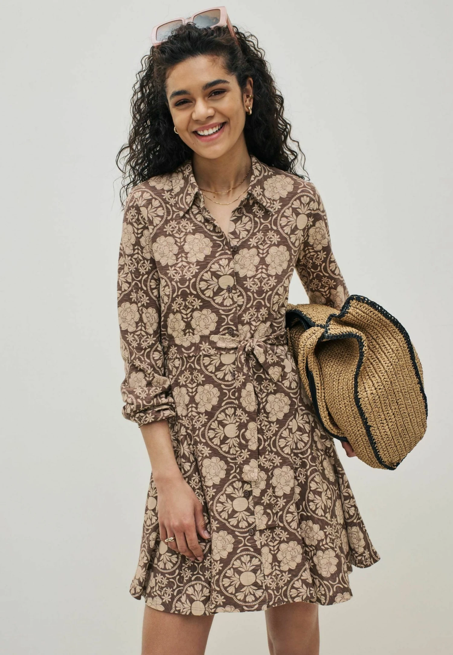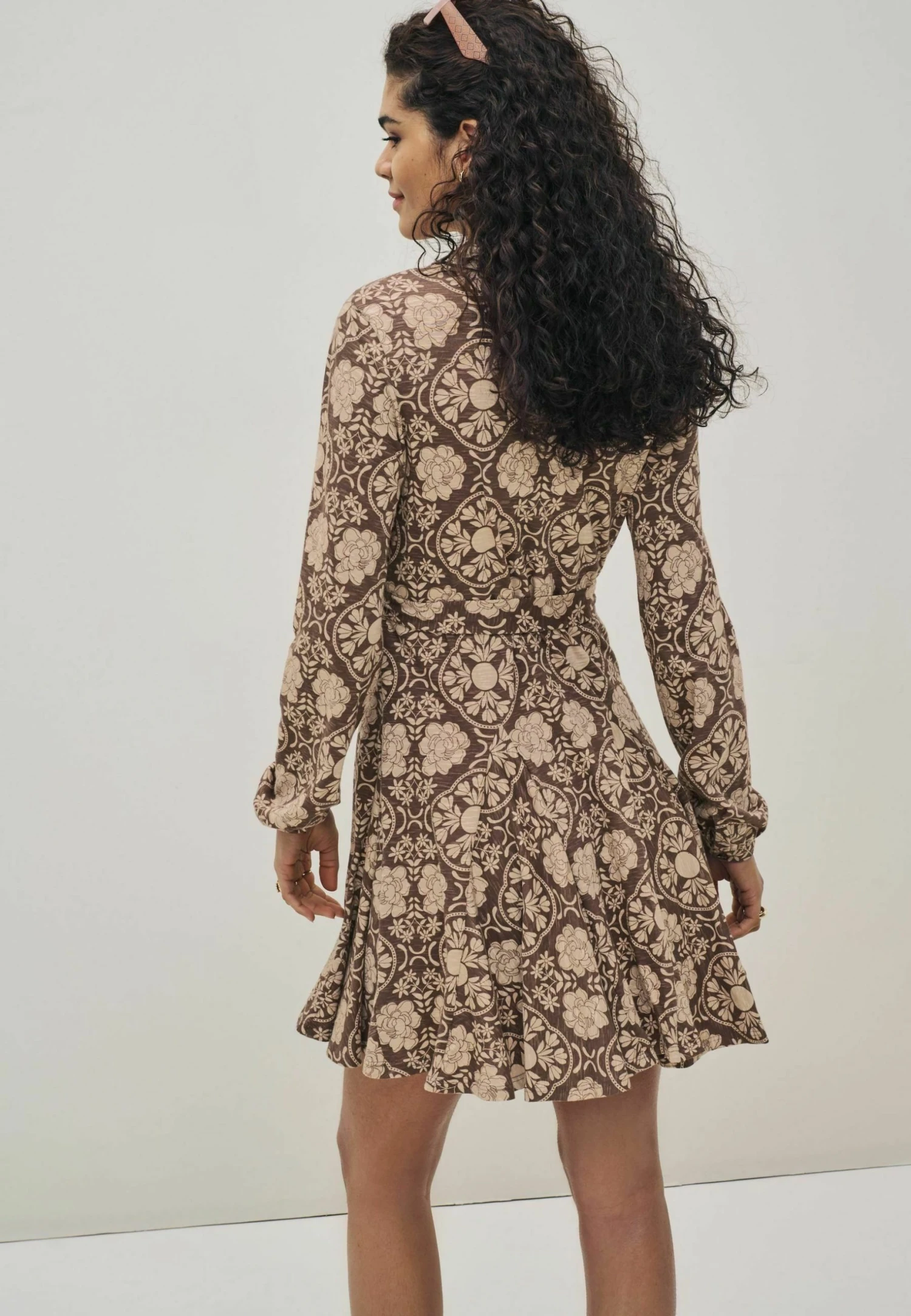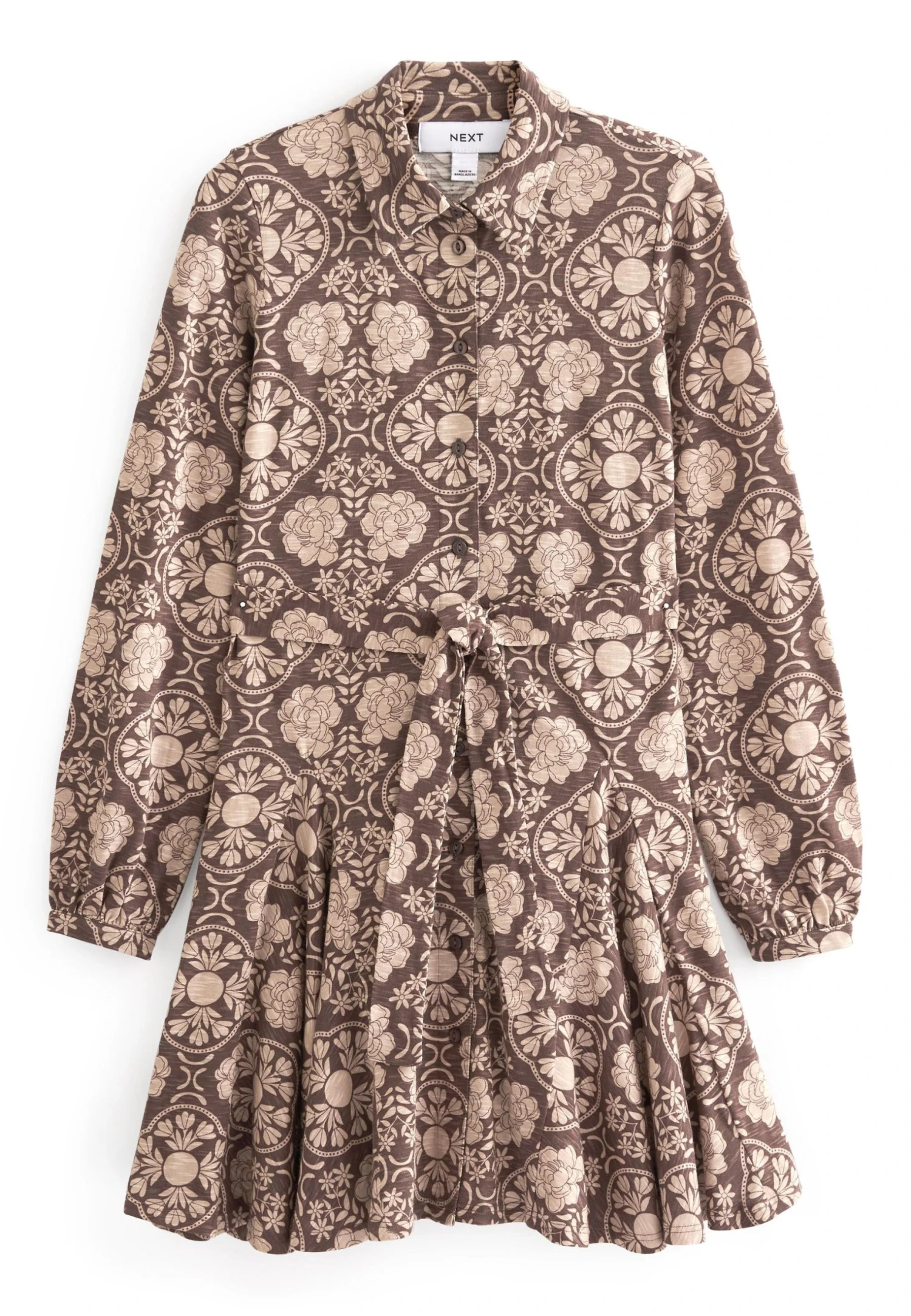 Next Long Sleeve Belted Standard – Blousejurk – Brown Paisley