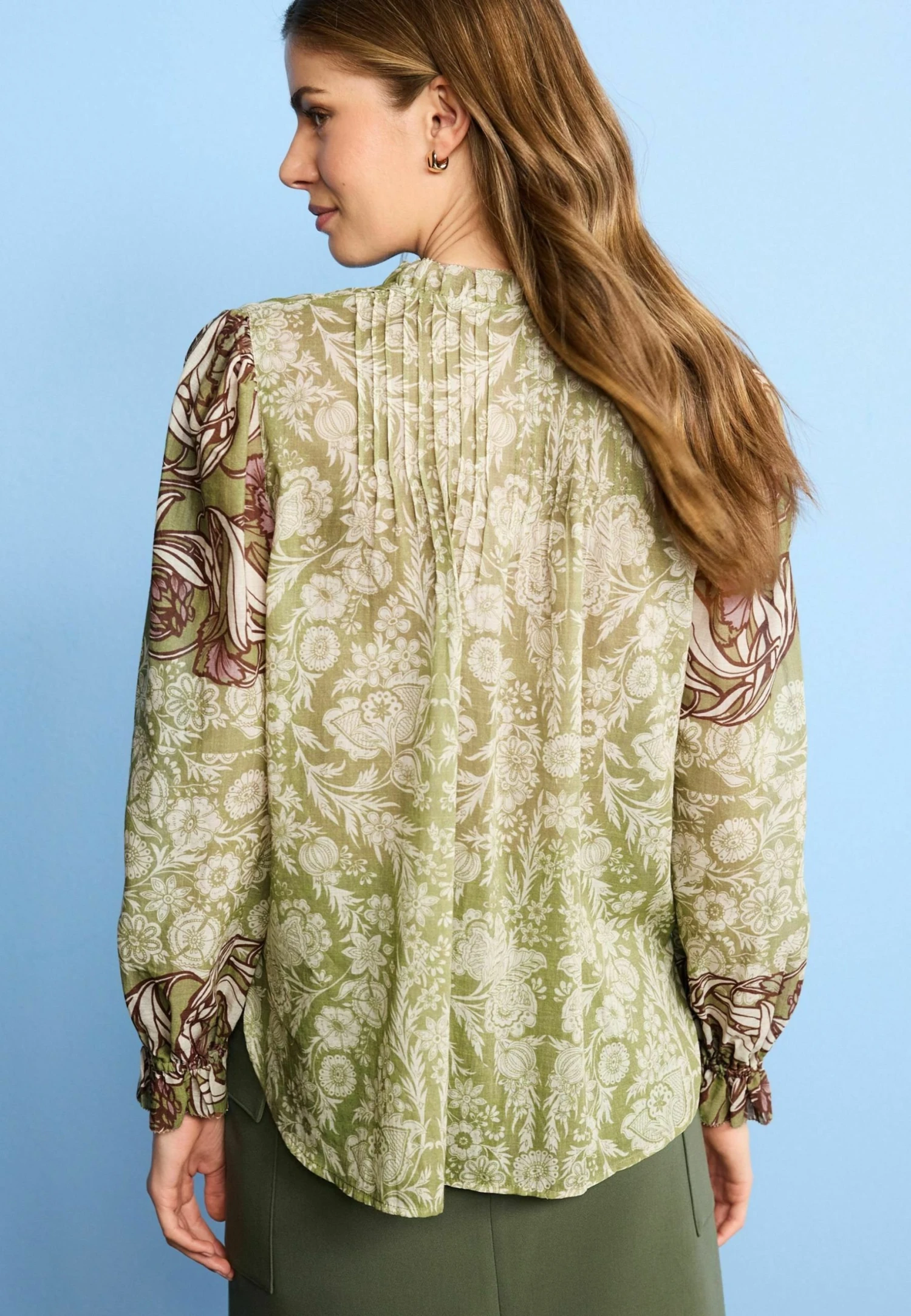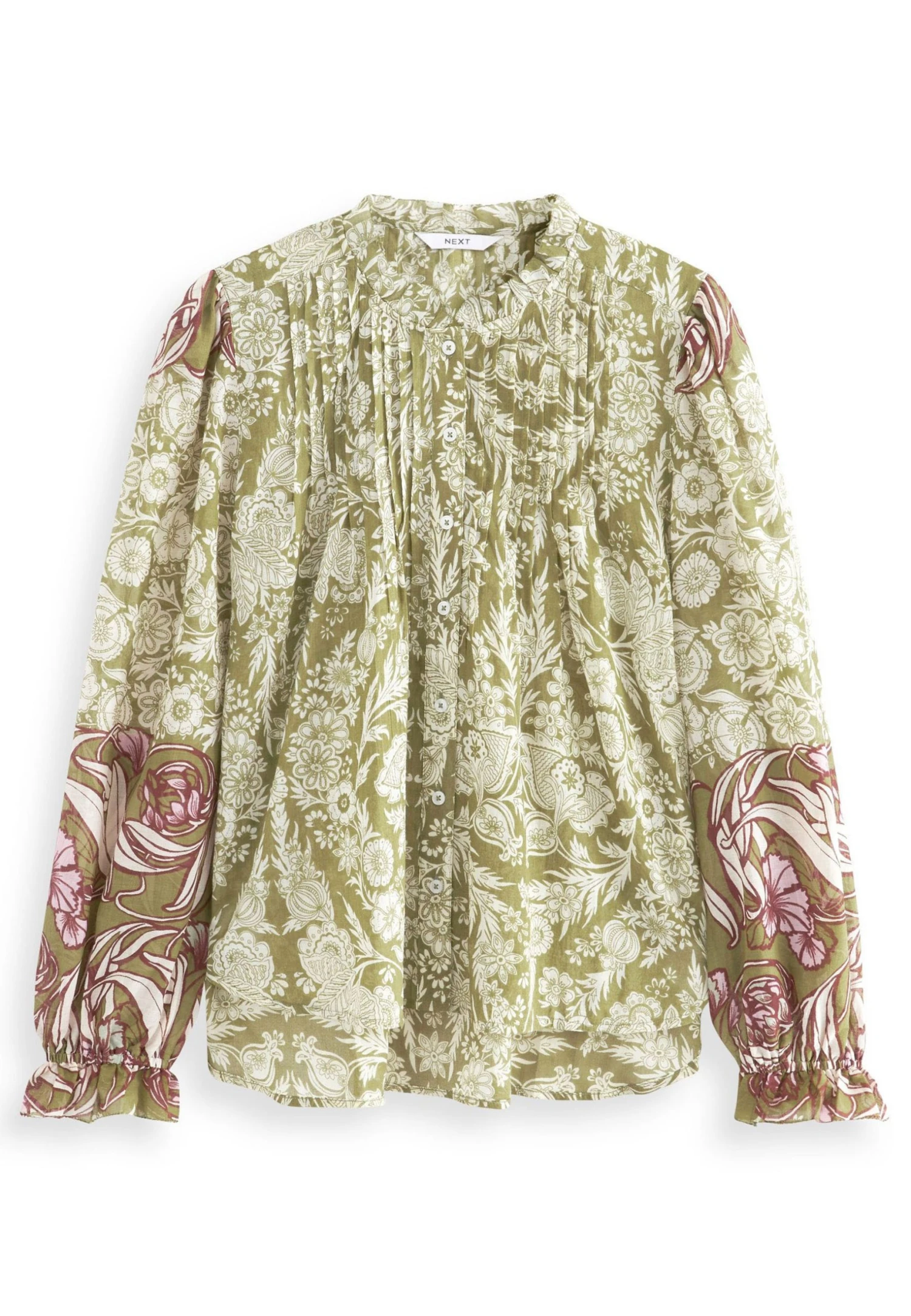 Next Pleat Front Long Sleeve Round Neck Standard – Blouse – Green Paisley Print