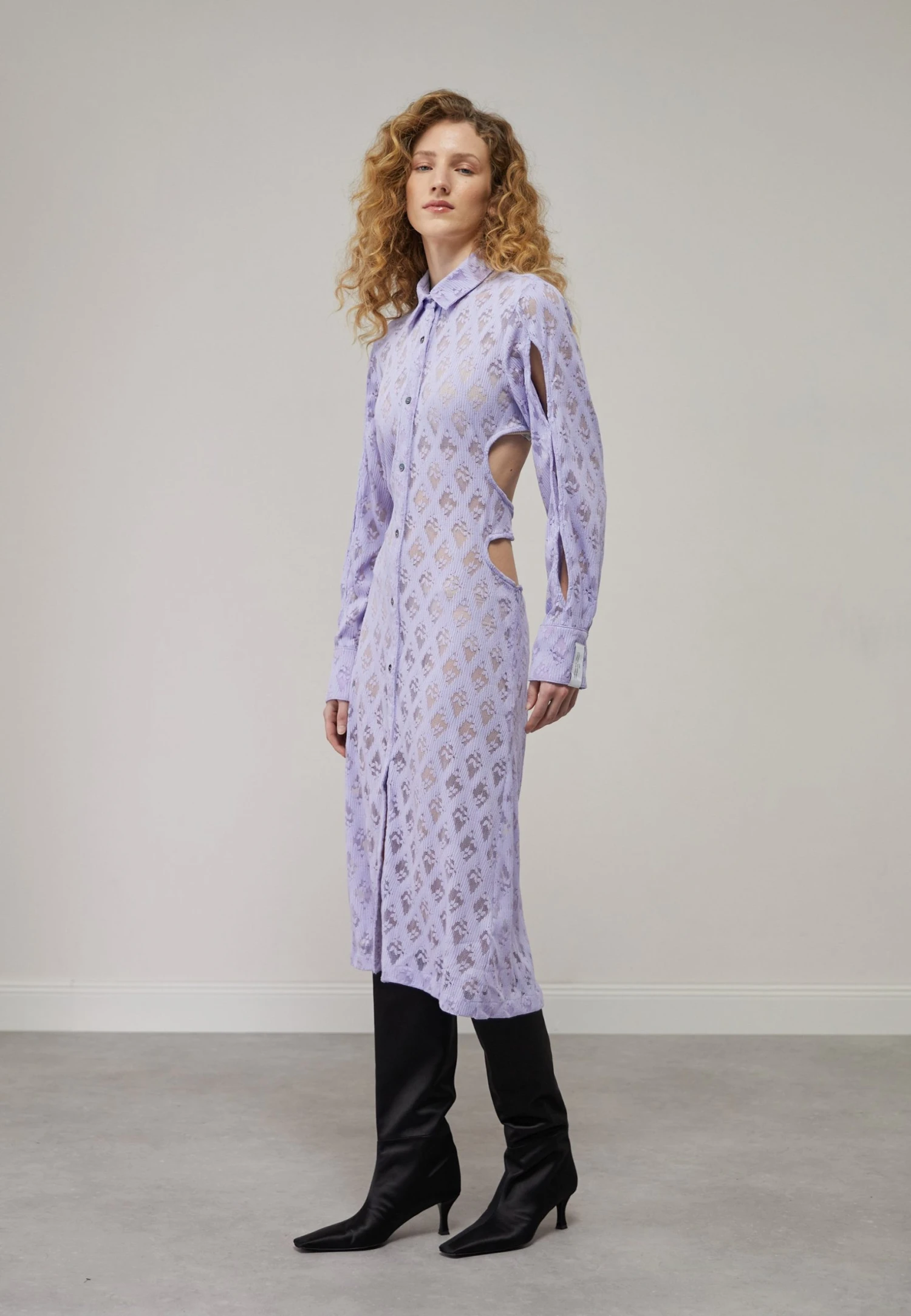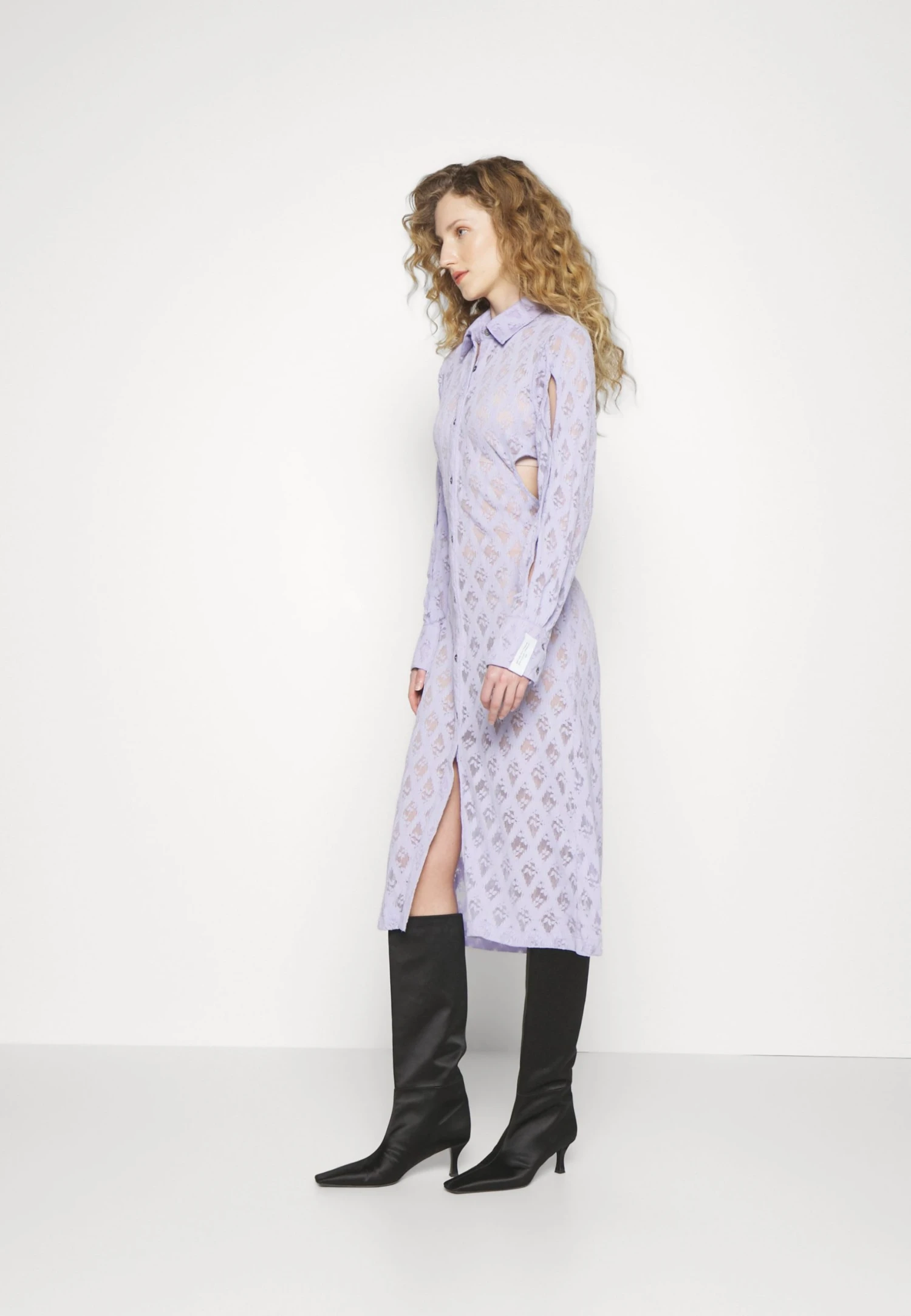 ROKH Sleeve Cut Out Detailed Long Dress – Gebreide Jurk – Lavender