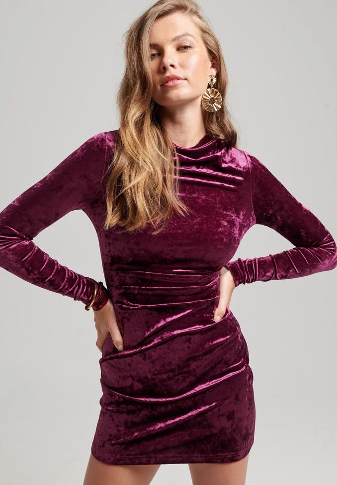 Superdry Long Sleeve Mini- Jurk – Maroon Crush