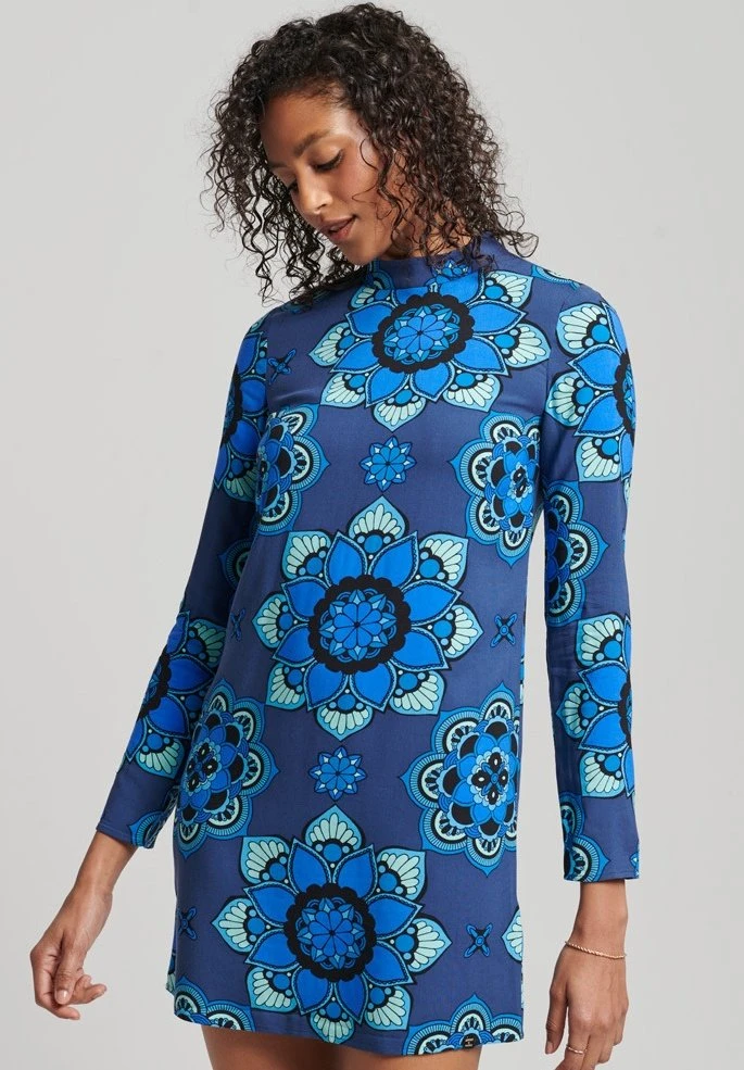 Superdry Long Sleeve Printed – Jurk – Psychedelic Blue