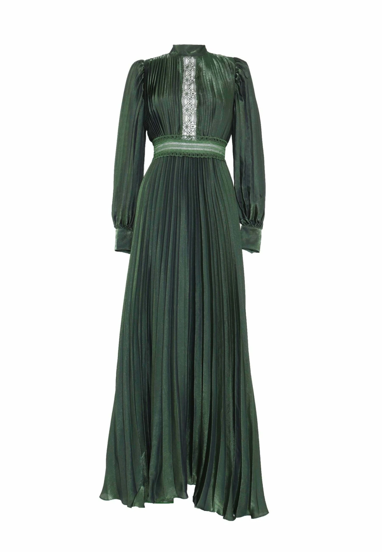 True Decadence Emerald Pleated Long Sleeve – Maxi-Jurk – Emerald Green