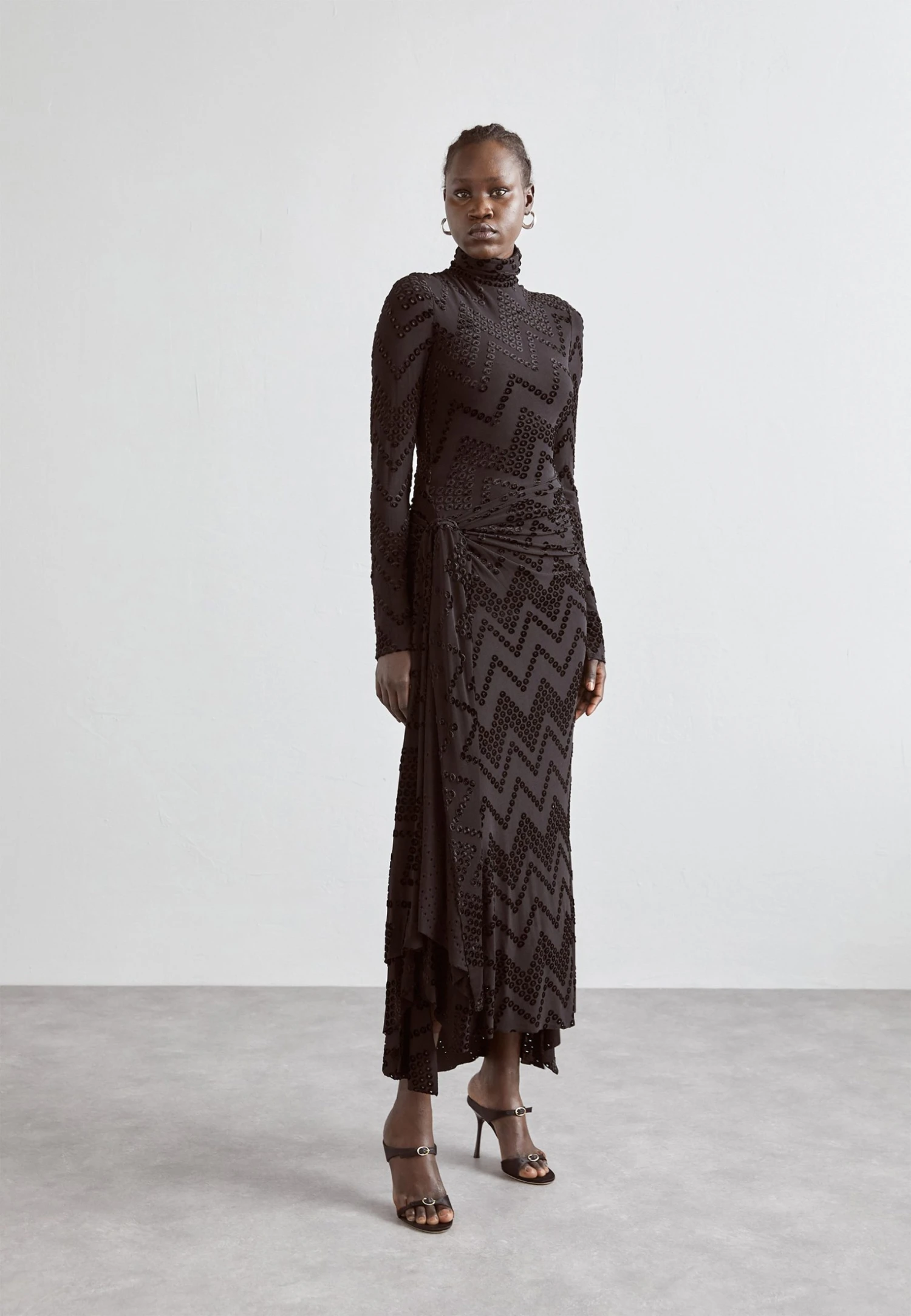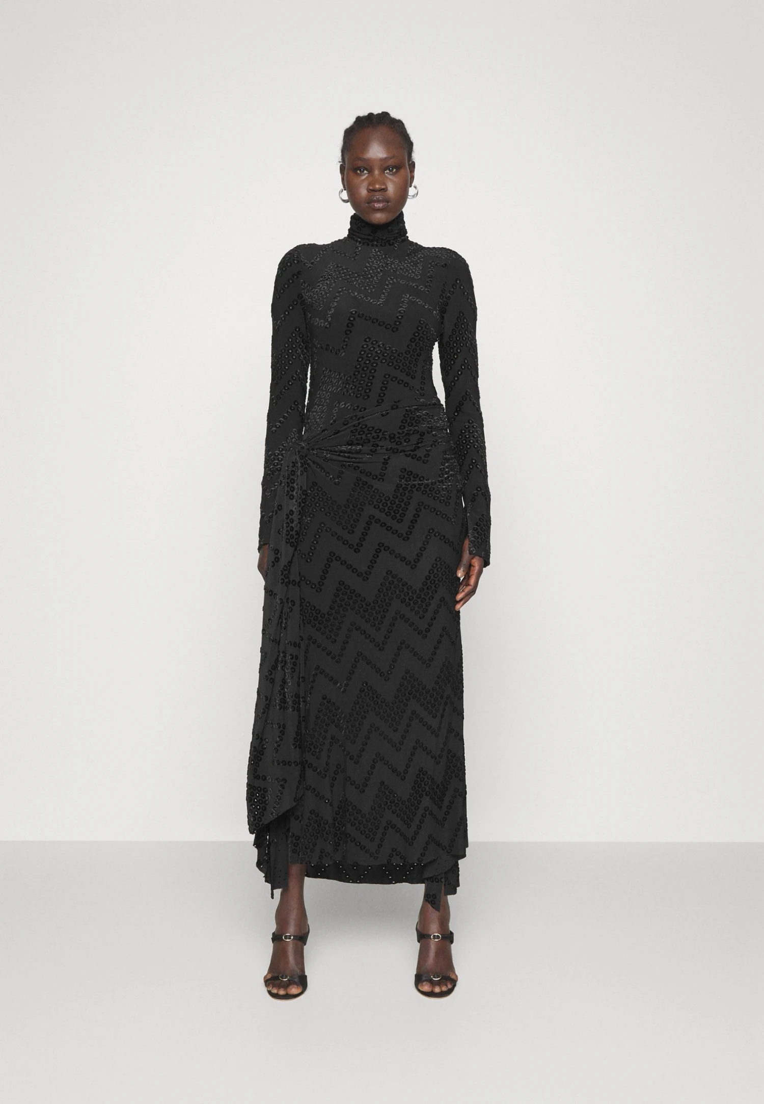 Victoria Beckham Long Sleeve High Neck Dress – Maxi-Jurk – Black