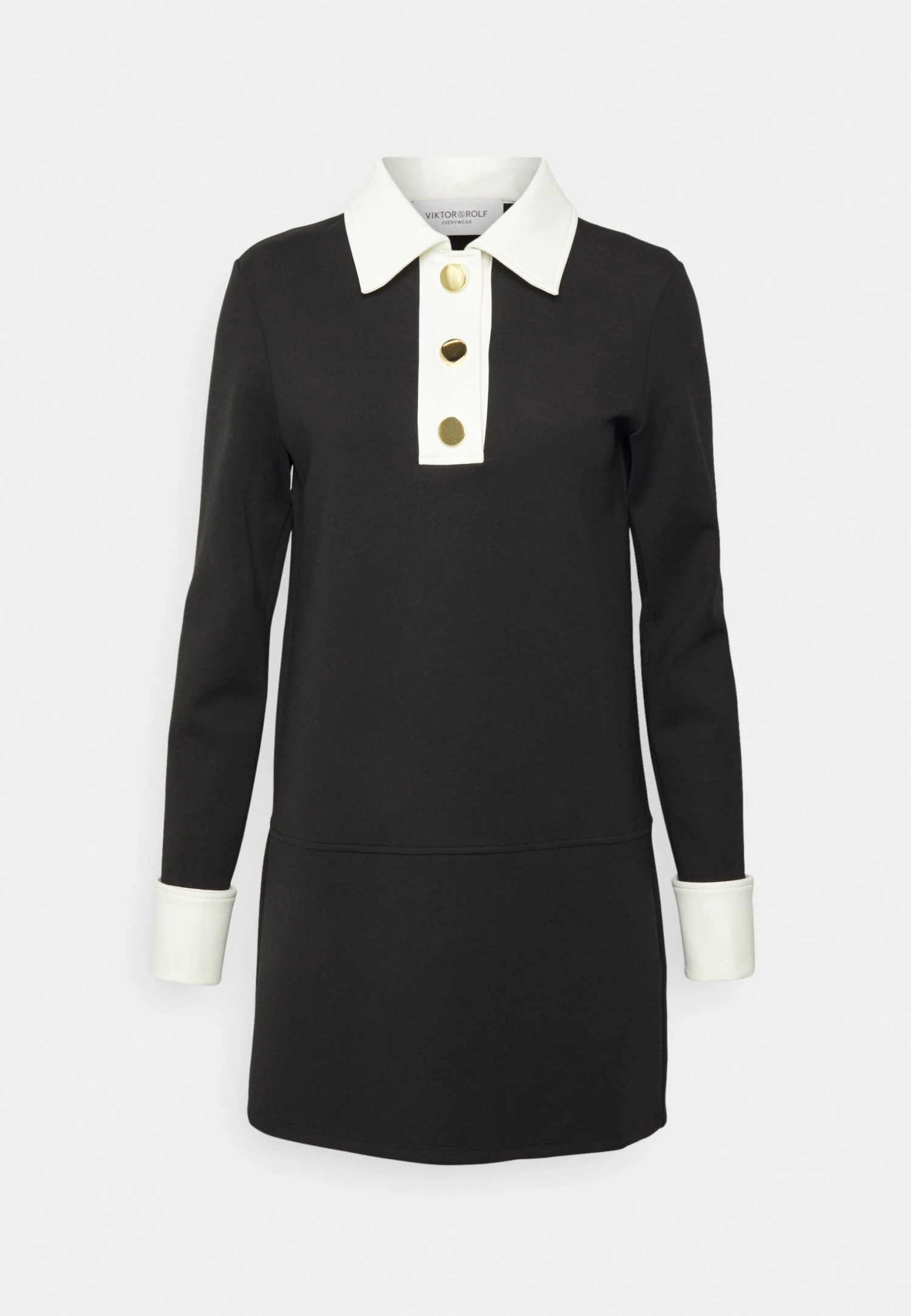 Viktor&Rolf Polo Collar Long Sleeve Dress- Jerseyjurk – Black